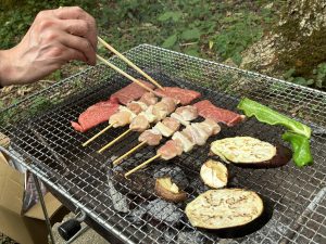お肉は滋賀県民御用達スーパーマーケット「平和堂」で買って、家に戻って、お庭BBQ。