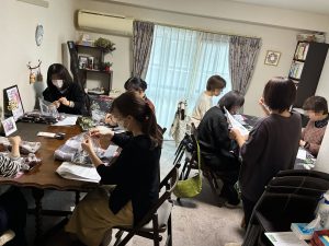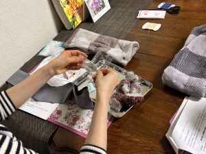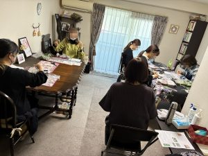香りを楽しみながら、皆でチクチクと針仕事をしました。