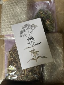【秋の開花以降に、藤袴(ドライ)とオリジナルグッズ(京都の芸術家作成陶器皿や絵葉書など)をご自宅に送付】